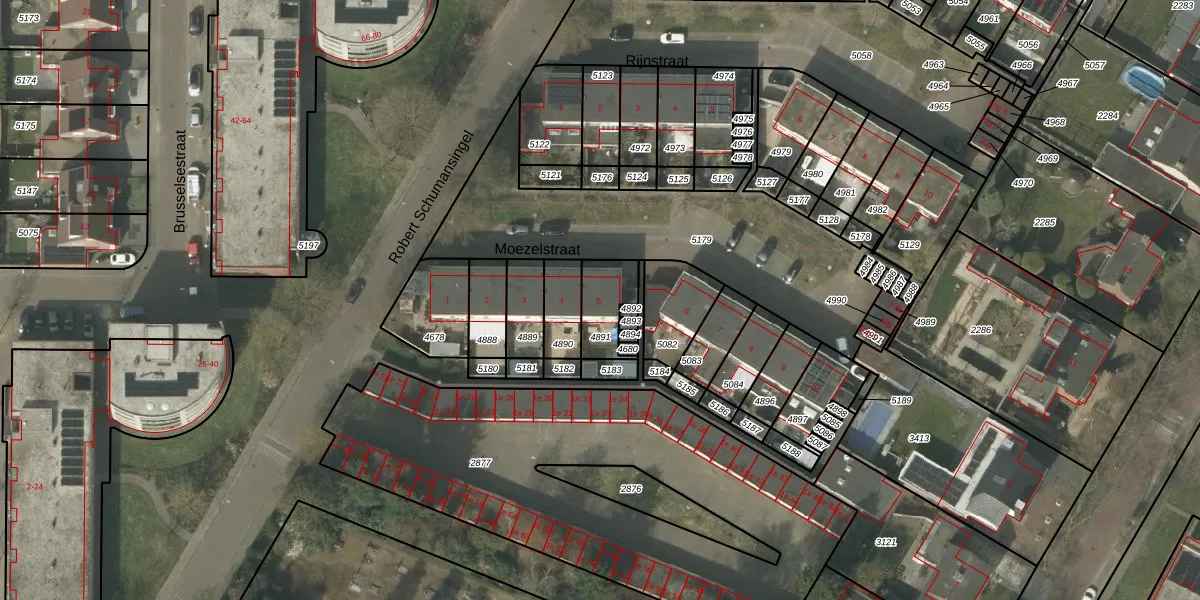 Moezelstraat 5 is gelegen op kadastraal perceel BDL02F4891. Deze kadastrale aanduiding is uniek en wordt gebruikt door het Kadaster om eigendomsrechten en andere zakelijke rechten vast te leggen. Het perceel maakt onderdeel uit van de kadastrale gemeente Budel.