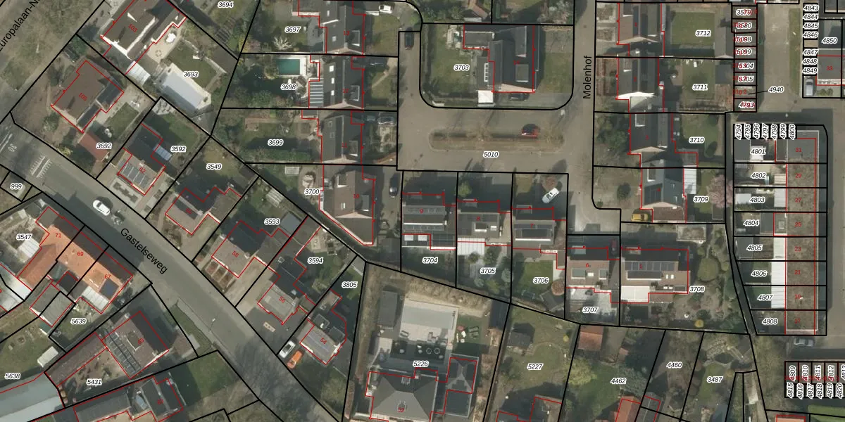 Molenhof 9 is gelegen op kadastraal perceel BDL02F3704. Deze kadastrale aanduiding is uniek en wordt gebruikt door het Kadaster om eigendomsrechten en andere zakelijke rechten vast te leggen. Het perceel maakt onderdeel uit van de kadastrale gemeente Budel.