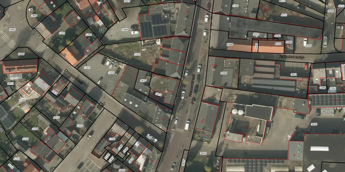 Het perceel waarop Nieuwstraat 10 staat heeft een oppervlakte van 264 m². Dit is een middelgroot perceel. De perceeloppervlakte wordt geregistreerd door het Kadaster. Gedetailleerde informatie over de maten van dit perceel kunt u vinden in het rapport Kadastrale kaart met maatvoering van Nieuwstraat 10.
