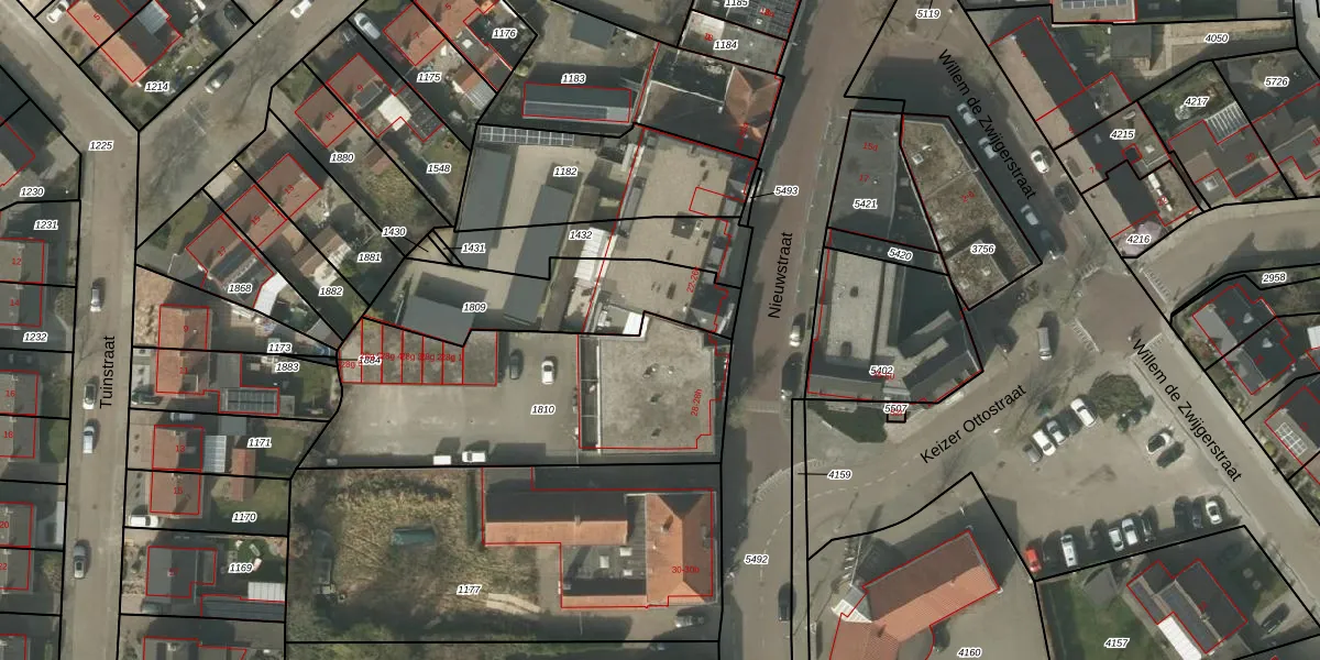 Het perceel waarop Nieuwstraat 28-f staat heeft een oppervlakte van 1245 m². Dit is een zeer groot perceel. De perceeloppervlakte wordt geregistreerd door het Kadaster. Gedetailleerde informatie over de maten van dit perceel kunt u vinden in het rapport Kadastrale kaart met maatvoering van Nieuwstraat 28-f.