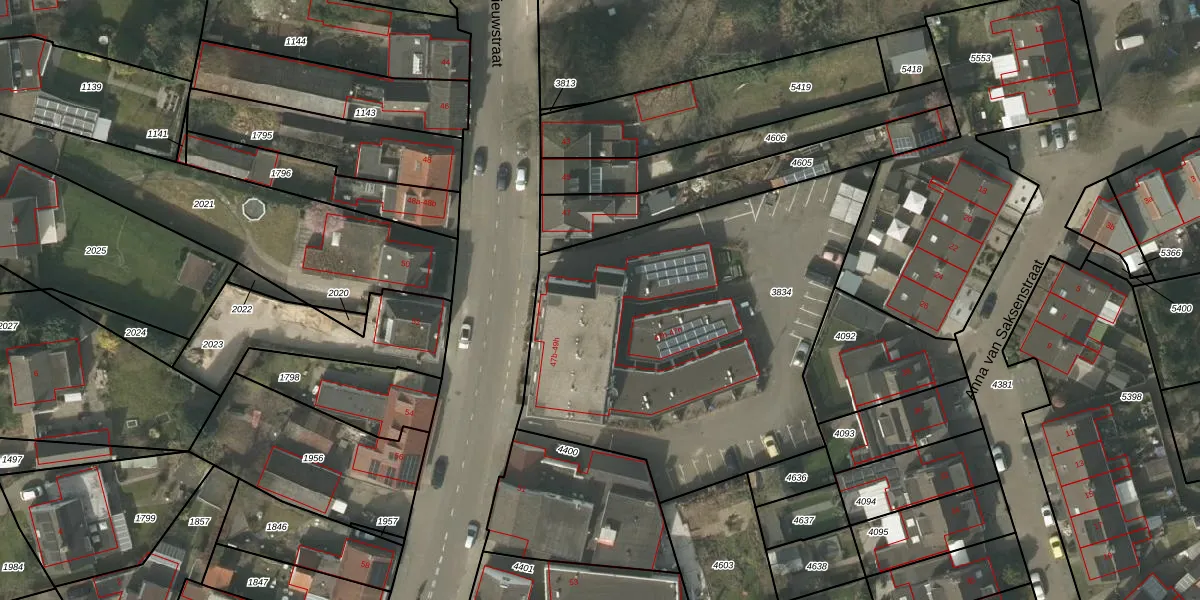 Het perceel waarop Nieuwstraat 49-e staat heeft een oppervlakte van 2089 m². Dit is een zeer groot perceel. De perceeloppervlakte wordt geregistreerd door het Kadaster. Gedetailleerde informatie over de maten van dit perceel kunt u vinden in het rapport Kadastrale kaart met maatvoering van Nieuwstraat 49-e.