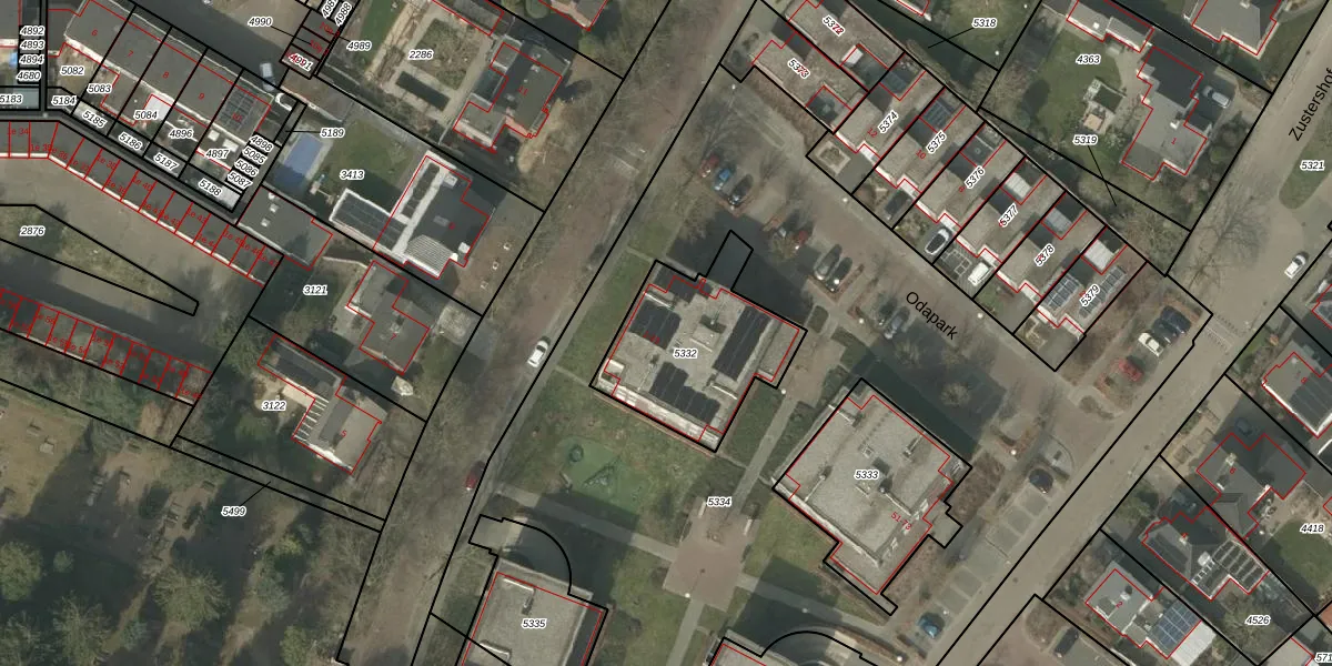 Het perceel waarop Odapark 17 staat heeft een oppervlakte van 541 m². Dit is een groot perceel. De perceeloppervlakte wordt geregistreerd door het Kadaster. Gedetailleerde informatie over de maten van dit perceel kunt u vinden in het rapport Kadastrale kaart met maatvoering van Odapark 17.