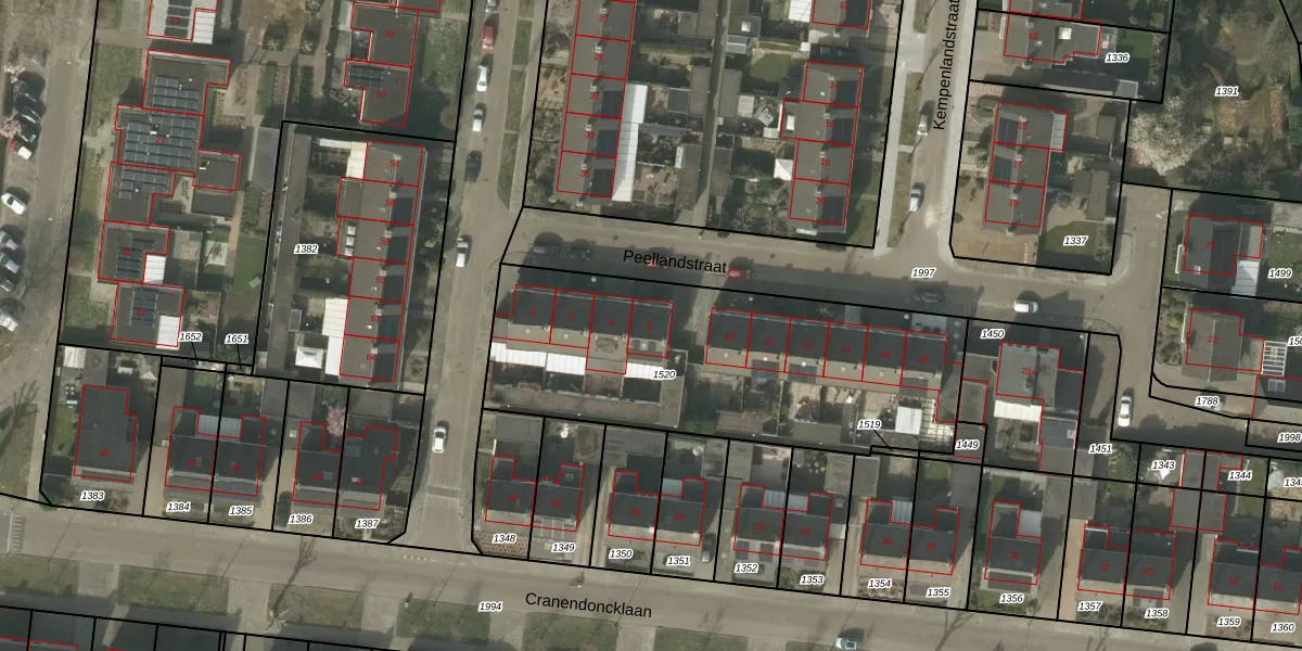 Het perceel waarop Peellandstraat 8 staat heeft een oppervlakte van 1621 m². Dit is een zeer groot perceel. De perceeloppervlakte wordt geregistreerd door het Kadaster. Gedetailleerde informatie over de maten van dit perceel kunt u vinden in het rapport Kadastrale kaart met maatvoering van Peellandstraat 8.
