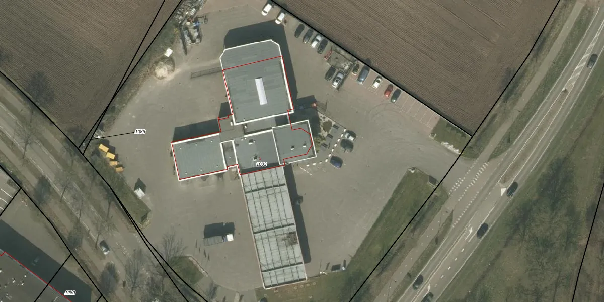 Randweg-Oost 1 is gelegen op kadastraal perceel BDL02K1083. Deze kadastrale aanduiding is uniek en wordt gebruikt door het Kadaster om eigendomsrechten en andere zakelijke rechten vast te leggen. Het perceel maakt onderdeel uit van de kadastrale gemeente Budel.