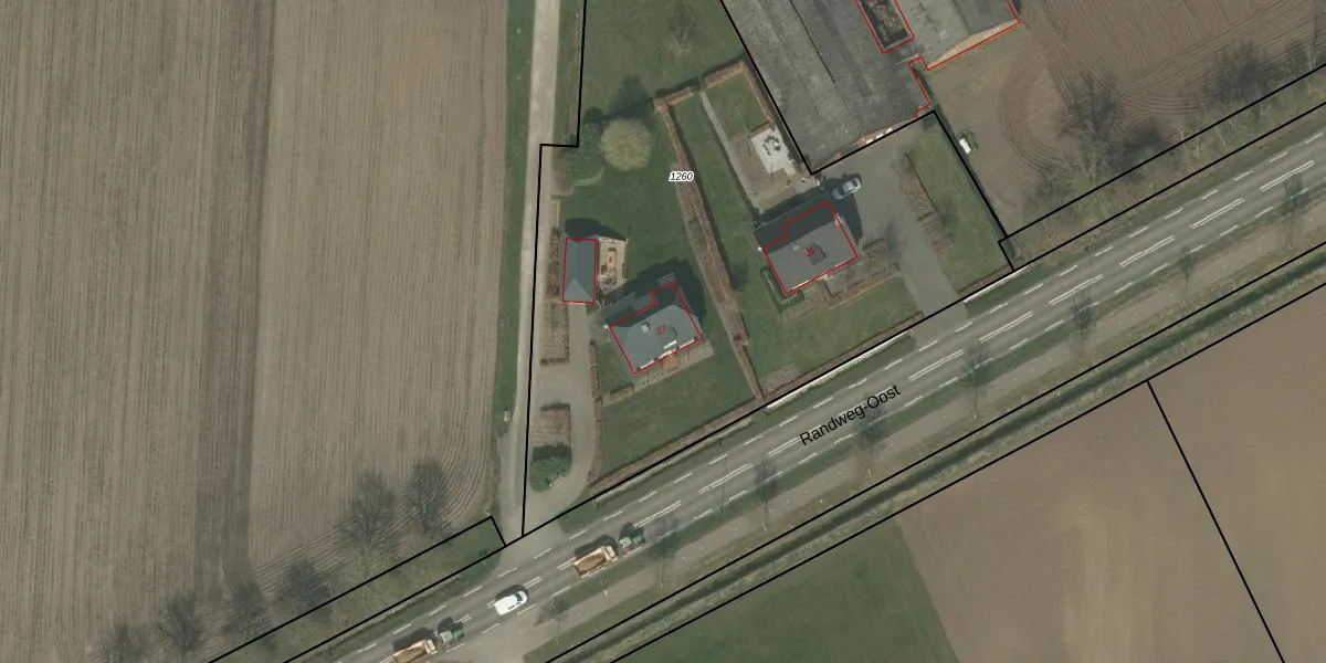Het perceel waarop Randweg-Oost 27 staat heeft een oppervlakte van 3600 m². Dit is een zeer groot perceel. De perceeloppervlakte wordt geregistreerd door het Kadaster. Gedetailleerde informatie over de maten van dit perceel kunt u vinden in het rapport Kadastrale kaart met maatvoering van Randweg-Oost 27.