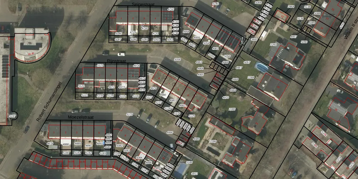 Gebruik de zoekbalk of klik op een perceel voor informatie over de adressen binnen dit perceel.