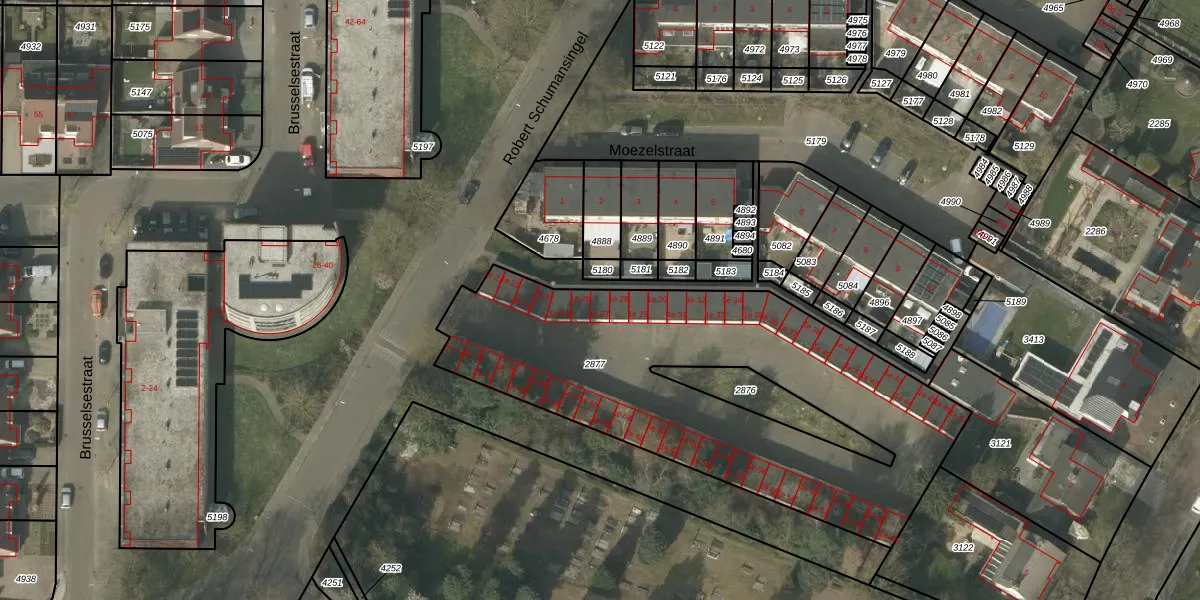 Robert Schumansingel 1-e-27 is gelegen op kadastraal perceel BDL02F2877. Deze kadastrale aanduiding is uniek en wordt gebruikt door het Kadaster om eigendomsrechten en andere zakelijke rechten vast te leggen. Het perceel maakt onderdeel uit van de kadastrale gemeente Budel.