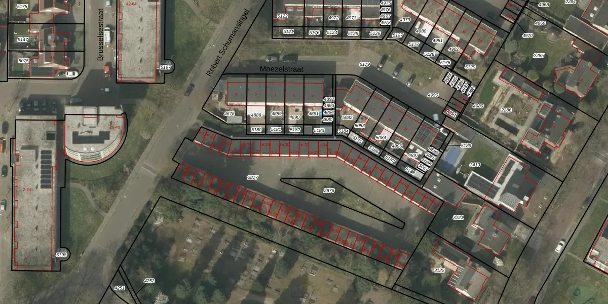 Robert Schumansingel 1-e-32 is gelegen op kadastraal perceel BDL02F2877. Deze kadastrale aanduiding is uniek en wordt gebruikt door het Kadaster om eigendomsrechten en andere zakelijke rechten vast te leggen. Het perceel maakt onderdeel uit van de kadastrale gemeente Budel.