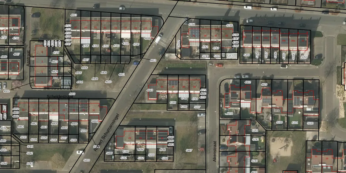 Robert Schumansingel 34 is gelegen op kadastraal perceel BDL02F5165. Deze kadastrale aanduiding is uniek en wordt gebruikt door het Kadaster om eigendomsrechten en andere zakelijke rechten vast te leggen. Het perceel maakt onderdeel uit van de kadastrale gemeente Budel.