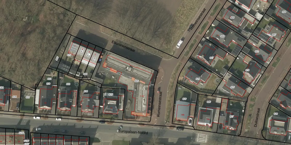 Romeinsestraat 13 is gelegen op kadastraal perceel BDL02H845. Deze kadastrale aanduiding is uniek en wordt gebruikt door het Kadaster om eigendomsrechten en andere zakelijke rechten vast te leggen. Het perceel maakt onderdeel uit van de kadastrale gemeente Budel.