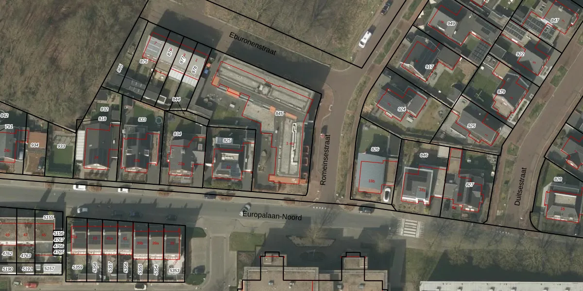 Het perceel waarop Romeinsestraat 25 staat heeft een oppervlakte van 1272 m². Dit is een zeer groot perceel. De perceeloppervlakte wordt geregistreerd door het Kadaster. Gedetailleerde informatie over de maten van dit perceel kunt u vinden in het rapport Kadastrale kaart met maatvoering van Romeinsestraat 25.
