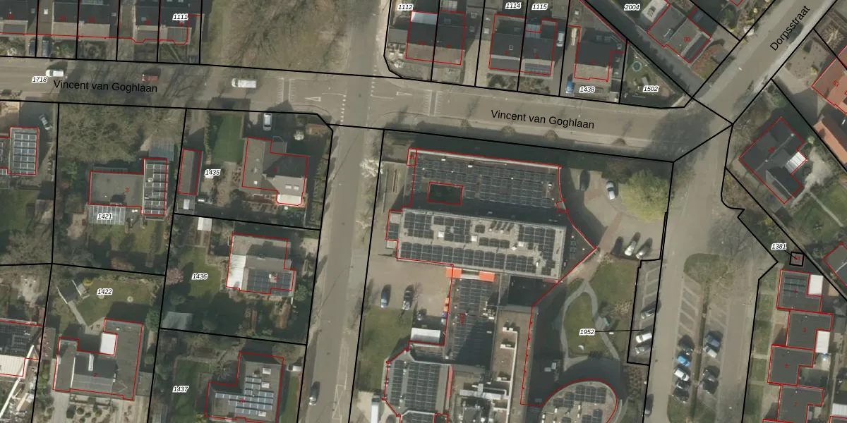 Het perceel waarop het adres ligt is BDL02-E-1953. De afkorting 'BDL02' staat voor kadastrale gemeente Budel. Het perceel is met 1,0 ha relatief groot. Het gemiddelde ligt in de kadastrale gemeente Budel op 4698,32 m². Het grootste perceel in de kadastrale gemeente is 1,97 km². Het kleinste perceel heeft een oppervlakte van 0 m². Op het perceel liggen in totaal 32 adressen. De huidige grenzen van het perceel zijn digitaal in de Basisregistratie Kadaster (BRK) geregistreerd op 19-12-2017.