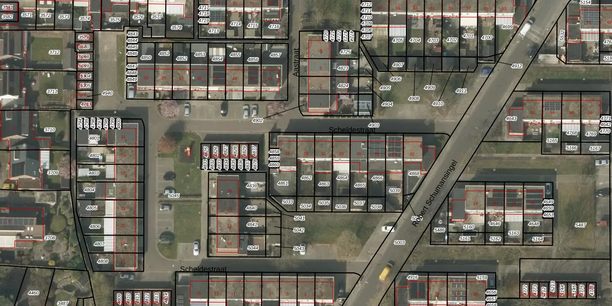 Scheldestraat 20 is gelegen op kadastraal perceel BDL02F4862. Deze kadastrale aanduiding is uniek en wordt gebruikt door het Kadaster om eigendomsrechten en andere zakelijke rechten vast te leggen. Het perceel maakt onderdeel uit van de kadastrale gemeente Budel.