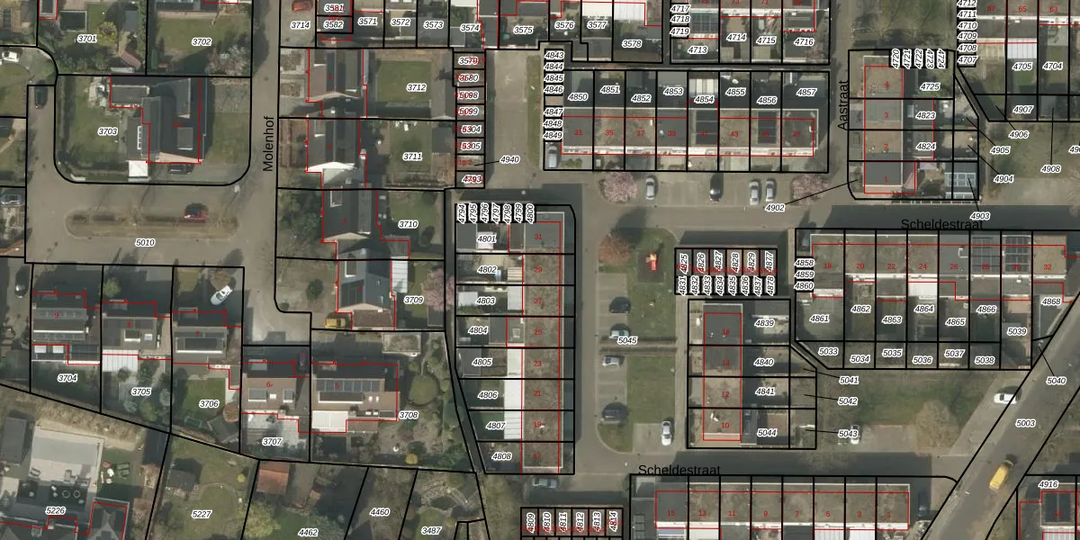 Scheldestraat 29 is gelegen op kadastraal perceel BDL02F4802. Deze kadastrale aanduiding is uniek en wordt gebruikt door het Kadaster om eigendomsrechten en andere zakelijke rechten vast te leggen. Het perceel maakt onderdeel uit van de kadastrale gemeente Budel.