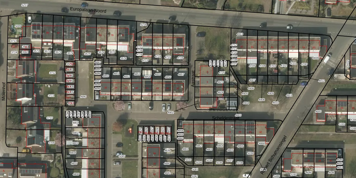 Scheldestraat 47 is gelegen op kadastraal perceel BDL02F4857. Deze kadastrale aanduiding is uniek en wordt gebruikt door het Kadaster om eigendomsrechten en andere zakelijke rechten vast te leggen. Het perceel maakt onderdeel uit van de kadastrale gemeente Budel.