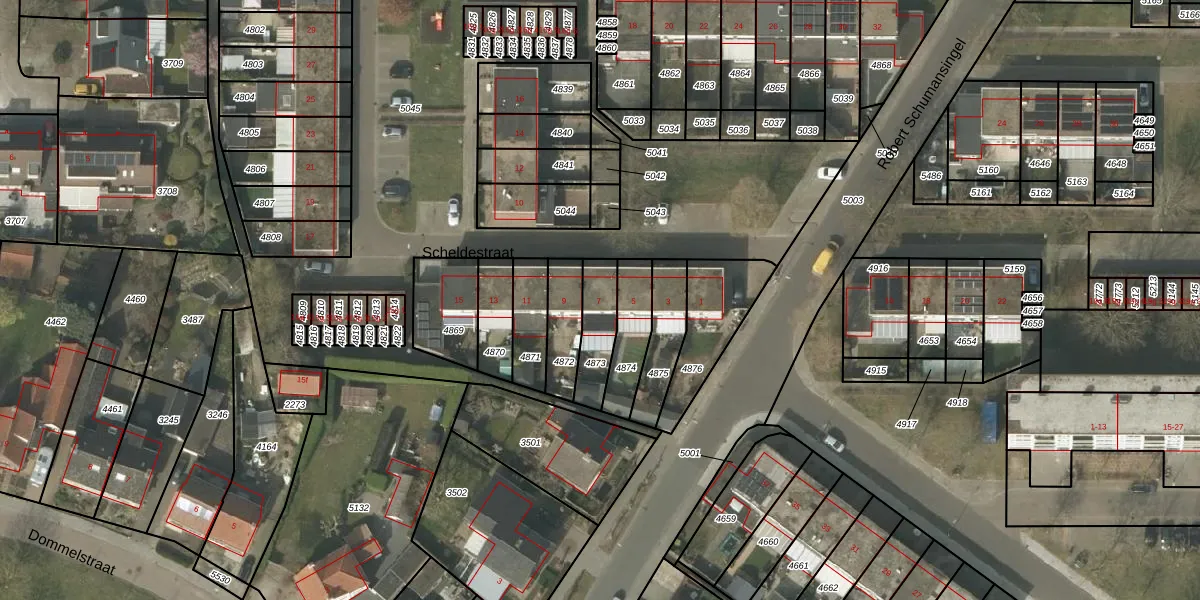 Scheldestraat 7 is gelegen op kadastraal perceel BDL02F4873. Deze kadastrale aanduiding is uniek en wordt gebruikt door het Kadaster om eigendomsrechten en andere zakelijke rechten vast te leggen. Het perceel maakt onderdeel uit van de kadastrale gemeente Budel.