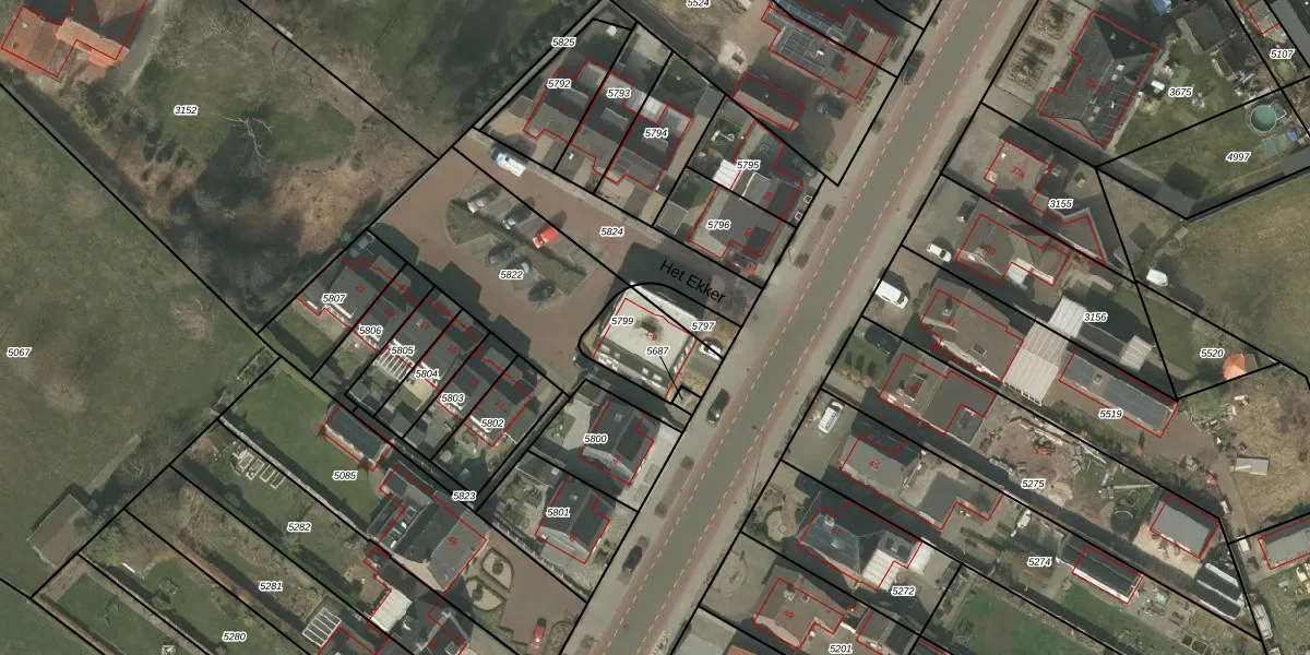 Het Ekker 1 is gelegen op kadastraal perceel BDL02D5799. Deze kadastrale aanduiding is uniek en wordt gebruikt door het Kadaster om eigendomsrechten en andere zakelijke rechten vast te leggen. Het perceel maakt onderdeel uit van de kadastrale gemeente Budel.