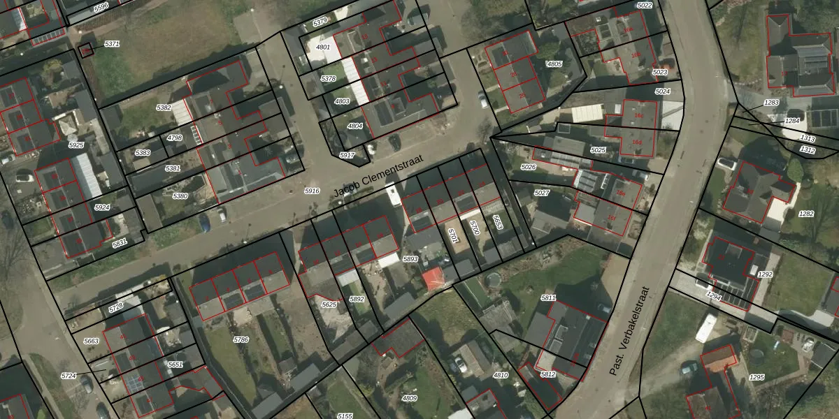 Jacob Clementstraat 18 is gelegen op kadastraal perceel BDL02D5893. Deze kadastrale aanduiding is uniek en wordt gebruikt door het Kadaster om eigendomsrechten en andere zakelijke rechten vast te leggen. Het perceel maakt onderdeel uit van de kadastrale gemeente Budel.