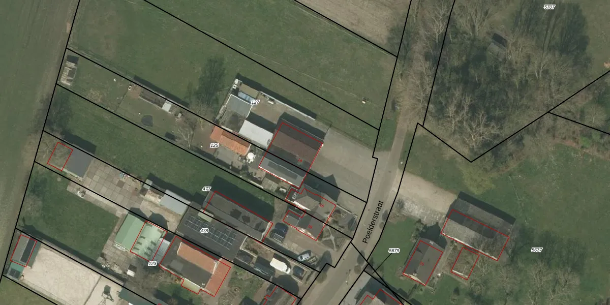 Poelderstraat 14 is gelegen op kadastraal perceel BDL02L127. Deze kadastrale aanduiding is uniek en wordt gebruikt door het Kadaster om eigendomsrechten en andere zakelijke rechten vast te leggen. Het perceel maakt onderdeel uit van de kadastrale gemeente Budel.