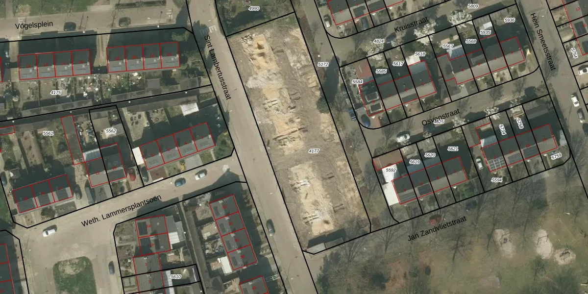 Sint Lambertusstraat 53 is gelegen op kadastraal perceel BDL02D4177. Deze kadastrale aanduiding is uniek en wordt gebruikt door het Kadaster om eigendomsrechten en andere zakelijke rechten vast te leggen. Het perceel maakt onderdeel uit van de kadastrale gemeente Budel.