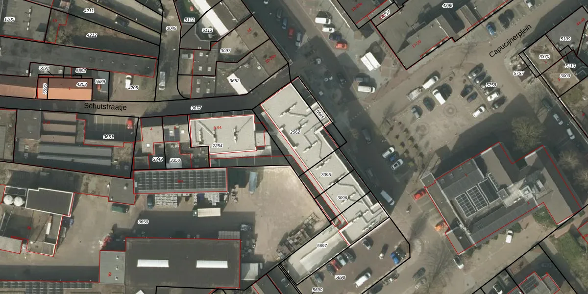 Schutstraatje 20-b is gelegen op kadastraal perceel BDL02F2562. Deze kadastrale aanduiding is uniek en wordt gebruikt door het Kadaster om eigendomsrechten en andere zakelijke rechten vast te leggen. Het perceel maakt onderdeel uit van de kadastrale gemeente Budel.