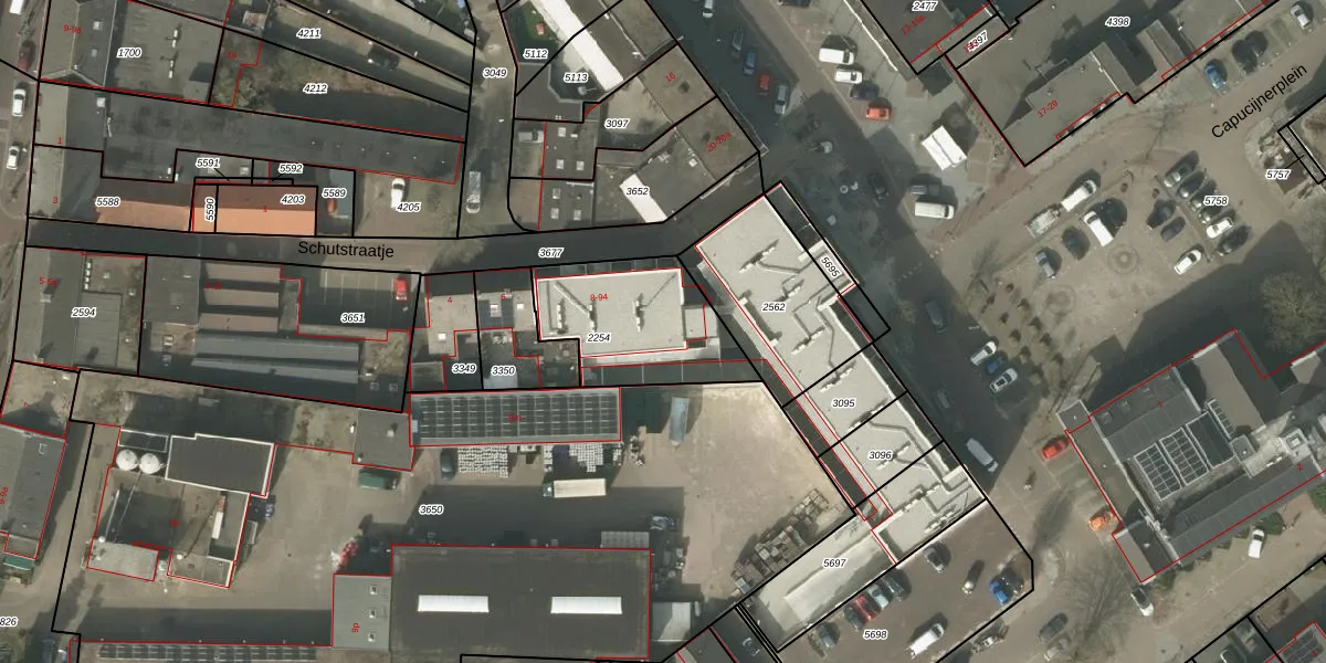 Het perceel waarop Schutstraatje 56 staat heeft een oppervlakte van 475 m². Dit is een groot perceel. De perceeloppervlakte wordt geregistreerd door het Kadaster. Gedetailleerde informatie over de maten van dit perceel kunt u vinden in het rapport Kadastrale kaart met maatvoering van Schutstraatje 56.