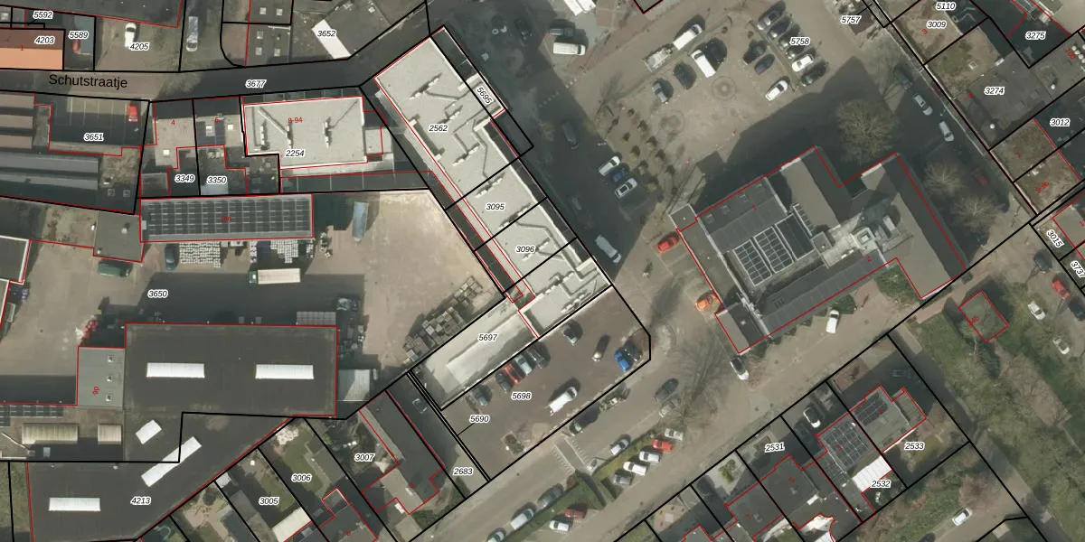 Het perceel waarop Schutstraatje 92 staat heeft een oppervlakte van 395 m². Dit is een groot perceel. De perceeloppervlakte wordt geregistreerd door het Kadaster. Gedetailleerde informatie over de maten van dit perceel kunt u vinden in het rapport Kadastrale kaart met maatvoering van Schutstraatje 92.
