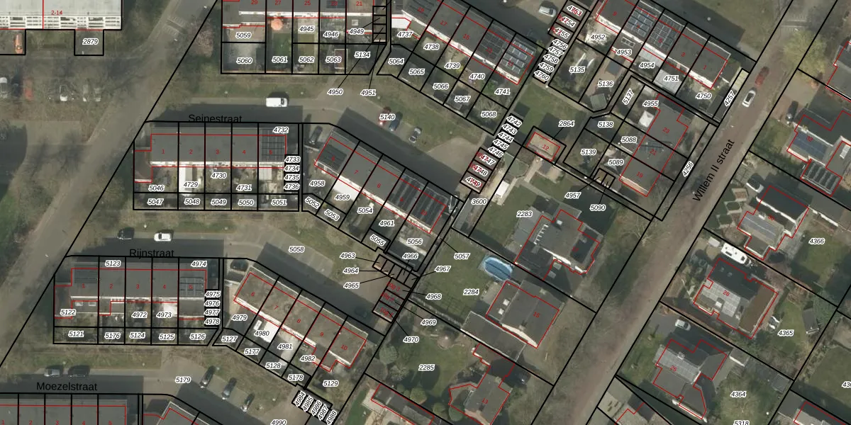 Gebruik de zoekbalk of klik op een perceel voor informatie over de adressen binnen dit perceel.