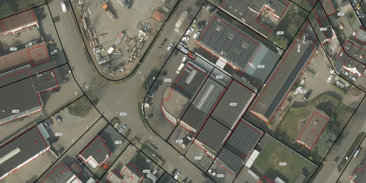 't Inne 9-b is gelegen op kadastraal perceel BDL02C3592. Deze kadastrale aanduiding is uniek en wordt gebruikt door het Kadaster om eigendomsrechten en andere zakelijke rechten vast te leggen. Het perceel maakt onderdeel uit van de kadastrale gemeente Budel.