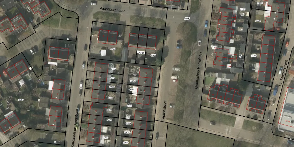 Teutenstraat 2 is gelegen op kadastraal perceel BDL02C3454. Deze kadastrale aanduiding is uniek en wordt gebruikt door het Kadaster om eigendomsrechten en andere zakelijke rechten vast te leggen. Het perceel maakt onderdeel uit van de kadastrale gemeente Budel.