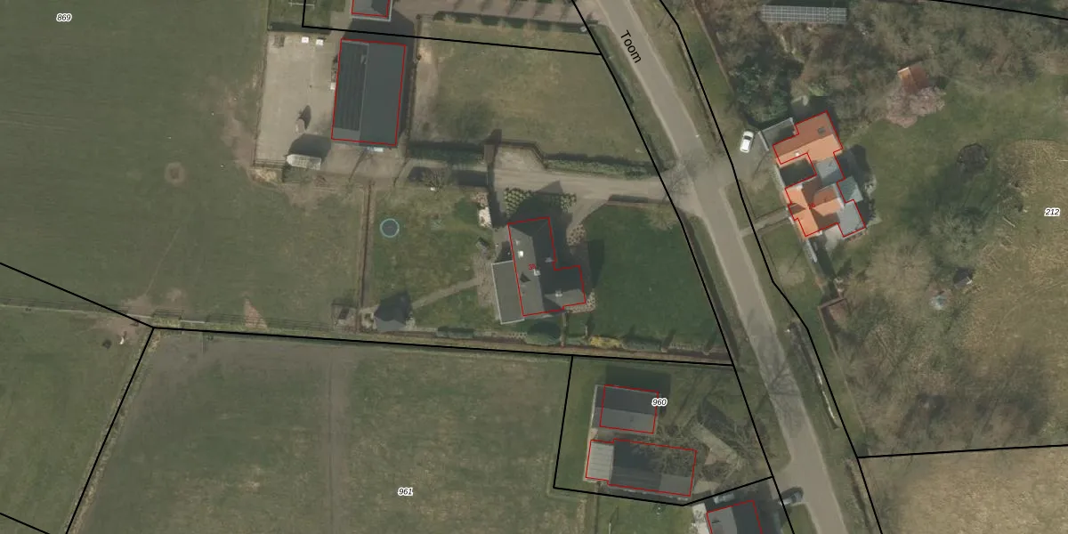 Het perceel waarop Toom 35 staat heeft een oppervlakte van 1,5 ha. Dit is een zeer groot perceel. De perceeloppervlakte wordt geregistreerd door het Kadaster. Gedetailleerde informatie over de maten van dit perceel kunt u vinden in het rapport Kadastrale kaart met maatvoering van Toom 35.