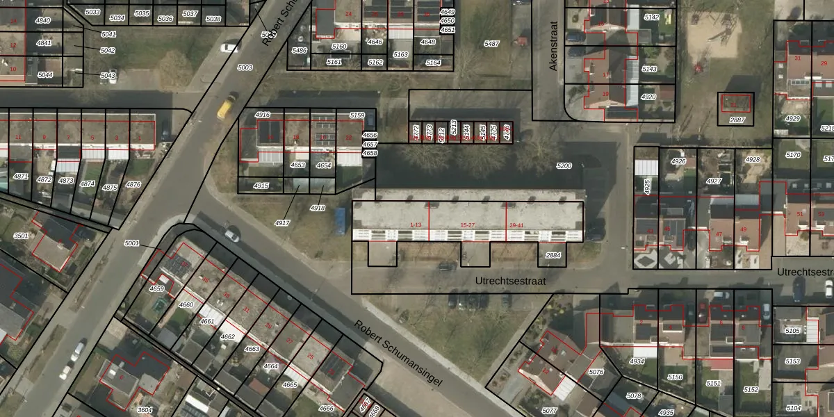 Het perceel waarop Utrechtsestraat 13 staat heeft een oppervlakte van 669 m². Dit is een groot perceel. De perceeloppervlakte wordt geregistreerd door het Kadaster. Gedetailleerde informatie over de maten van dit perceel kunt u vinden in het rapport Kadastrale kaart met maatvoering van Utrechtsestraat 13.