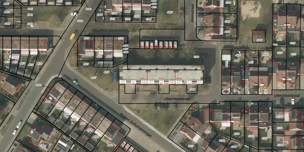 Utrechtsestraat 21 is gelegen op kadastraal perceel BDL02F2884. Deze kadastrale aanduiding is uniek en wordt gebruikt door het Kadaster om eigendomsrechten en andere zakelijke rechten vast te leggen. Het perceel maakt onderdeel uit van de kadastrale gemeente Budel.