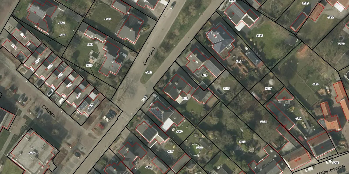 Het perceel waarop Zustershof 12 staat heeft een oppervlakte van 680 m². Dit is een groot perceel. De perceeloppervlakte wordt geregistreerd door het Kadaster. Gedetailleerde informatie over de maten van dit perceel kunt u vinden in het rapport Kadastrale kaart met maatvoering van Zustershof 12.