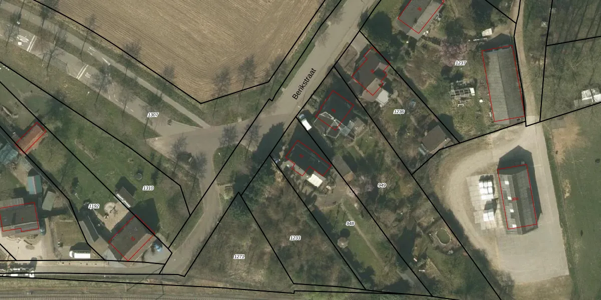 Het perceel waarop Berikstraat 42 staat heeft een oppervlakte van 1038 m². Dit is een zeer groot perceel. De perceeloppervlakte wordt geregistreerd door het Kadaster. Gedetailleerde informatie over de maten van dit perceel kunt u vinden in het rapport Kadastrale kaart met maatvoering van Berikstraat 42.