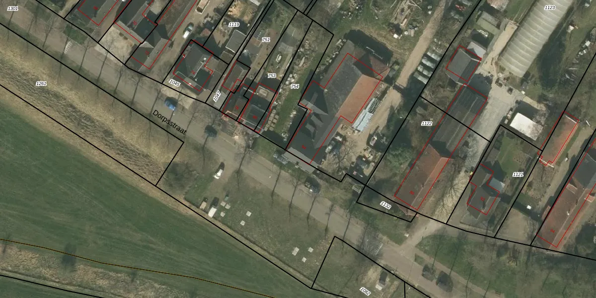 Het perceel waarop Dorpsstraat 84 staat heeft een oppervlakte van 5935 m². Dit is een zeer groot perceel. De perceeloppervlakte wordt geregistreerd door het Kadaster. Gedetailleerde informatie over de maten van dit perceel kunt u vinden in het rapport Kadastrale kaart met maatvoering van Dorpsstraat 84.