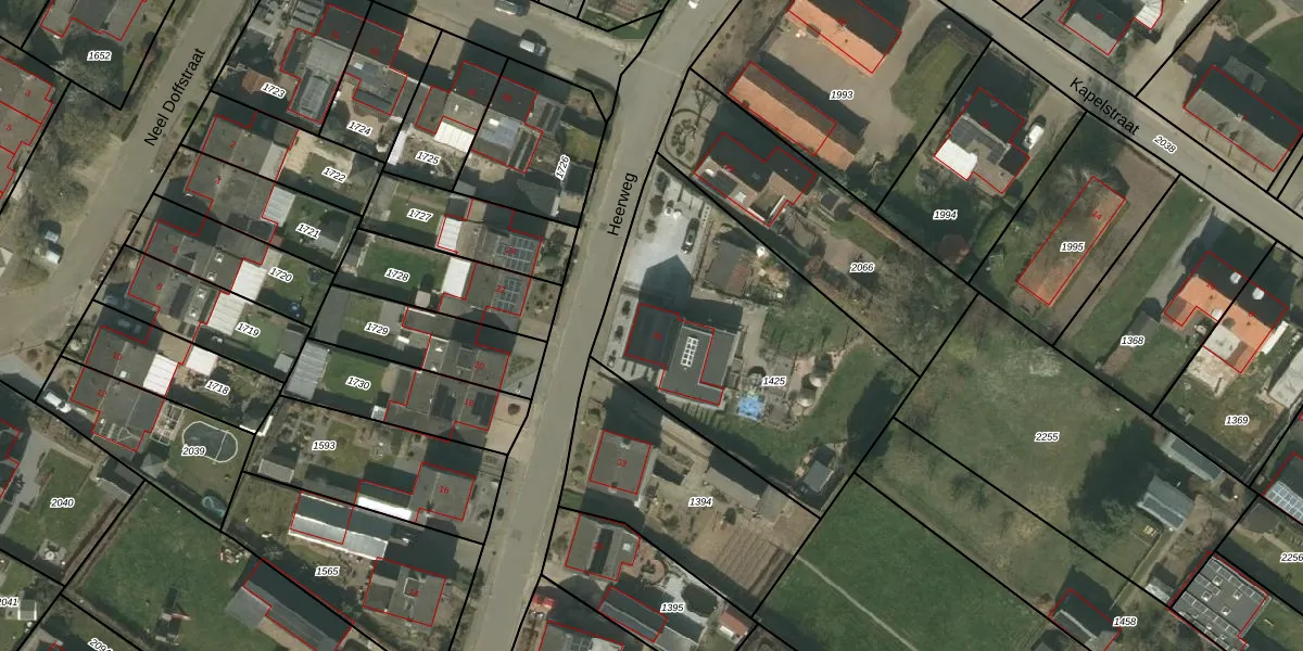Het perceel waarop Heerweg 35 staat heeft een oppervlakte van 1319 m². Dit is een zeer groot perceel. De perceeloppervlakte wordt geregistreerd door het Kadaster. Gedetailleerde informatie over de maten van dit perceel kunt u vinden in het rapport Kadastrale kaart met maatvoering van Heerweg 35.