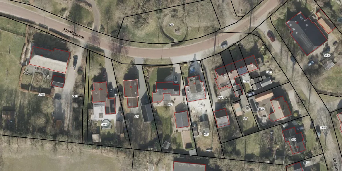 Het perceel waarop Hoofdstraat 38-A staat heeft een oppervlakte van 1121 m². Dit is een zeer groot perceel. De perceeloppervlakte wordt geregistreerd door het Kadaster. Gedetailleerde informatie over de maten van dit perceel kunt u vinden in het rapport Kadastrale kaart met maatvoering van Hoofdstraat 38-A.