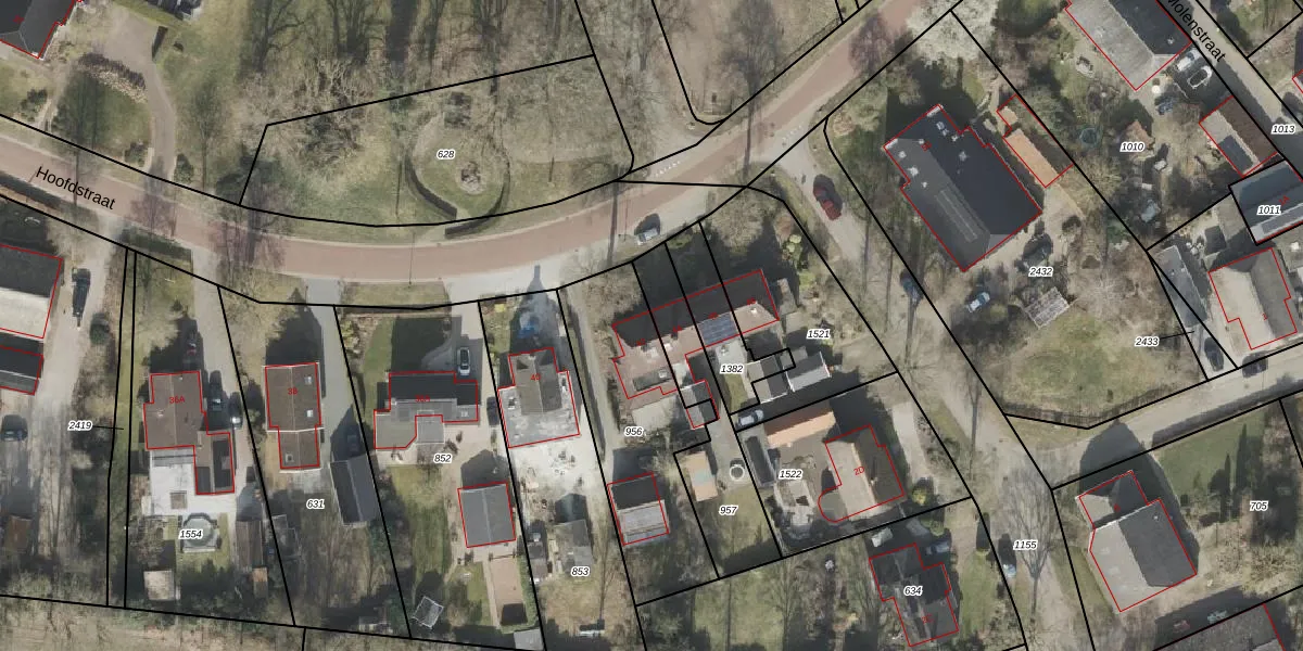 Het perceel waarop Hoofdstraat 42 staat heeft een oppervlakte van 687 m². Dit is een groot perceel. De perceeloppervlakte wordt geregistreerd door het Kadaster. Gedetailleerde informatie over de maten van dit perceel kunt u vinden in het rapport Kadastrale kaart met maatvoering van Hoofdstraat 42.