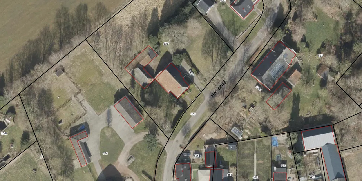 Hornsedijk 1 is gelegen op kadastraal perceel BGR01K583. Deze kadastrale aanduiding is uniek en wordt gebruikt door het Kadaster om eigendomsrechten en andere zakelijke rechten vast te leggen. Het perceel maakt onderdeel uit van de kadastrale gemeente Borger.