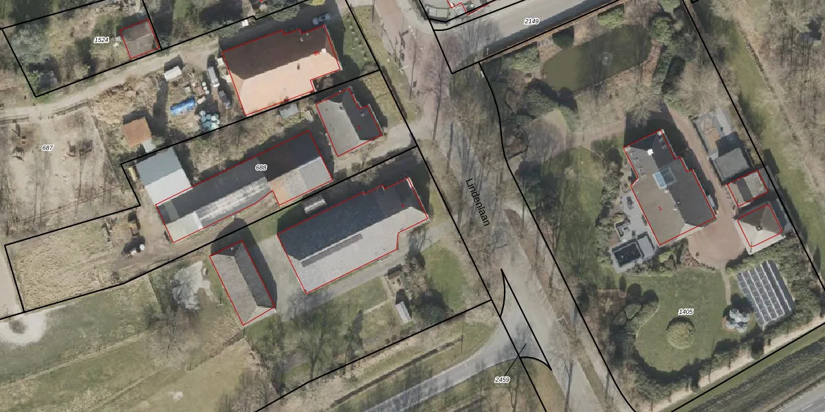 Het perceel waarop Lindenlaan 4 staat heeft een oppervlakte van 1,2 ha. Dit is een zeer groot perceel. De perceeloppervlakte wordt geregistreerd door het Kadaster. Gedetailleerde informatie over de maten van dit perceel kunt u vinden in het rapport Kadastrale kaart met maatvoering van Lindenlaan 4.
