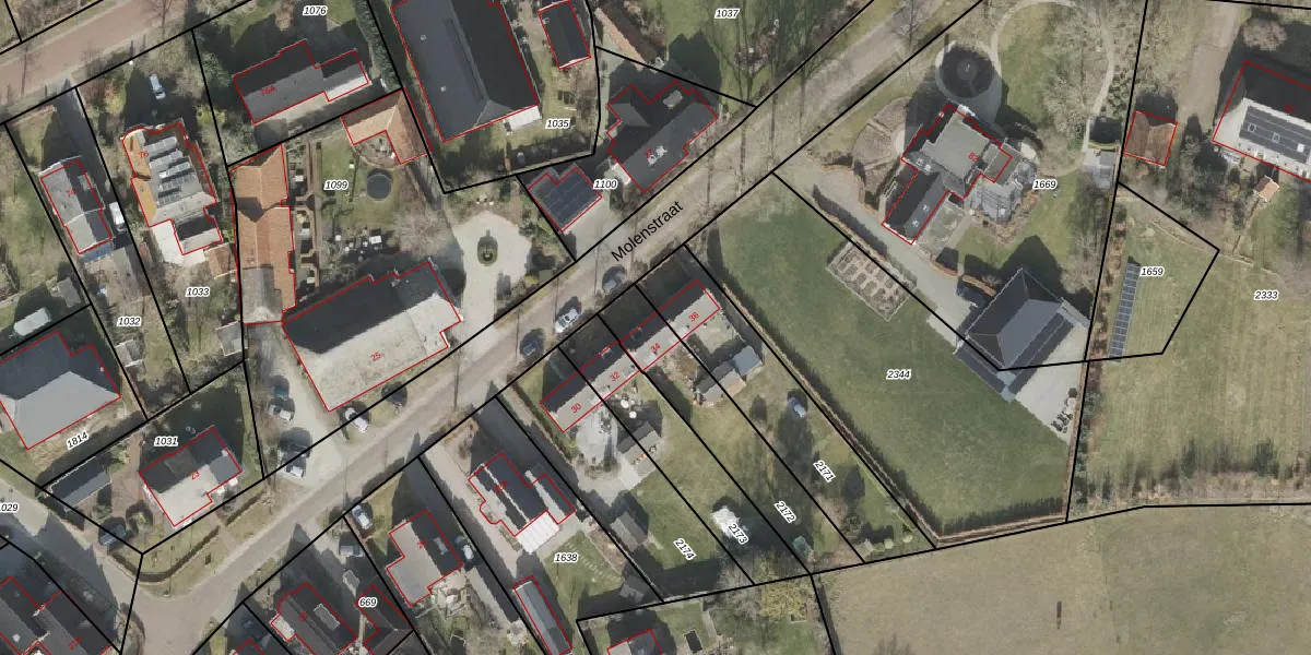 Molenstraat 34 is gelegen op kadastraal perceel BGR01K2172. Deze kadastrale aanduiding is uniek en wordt gebruikt door het Kadaster om eigendomsrechten en andere zakelijke rechten vast te leggen. Het perceel maakt onderdeel uit van de kadastrale gemeente Borger.