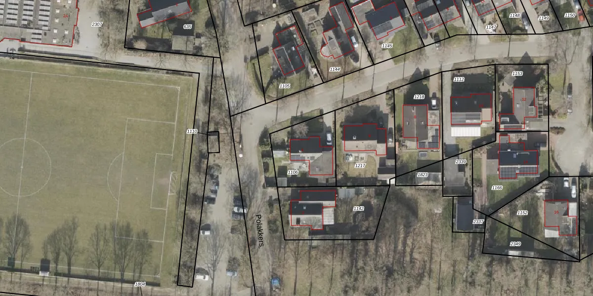 Het perceel waarop Polakkers 4 staat heeft een oppervlakte van 460 m². Dit is een groot perceel. De perceeloppervlakte wordt geregistreerd door het Kadaster. Gedetailleerde informatie over de maten van dit perceel kunt u vinden in het rapport Kadastrale kaart met maatvoering van Polakkers 4.