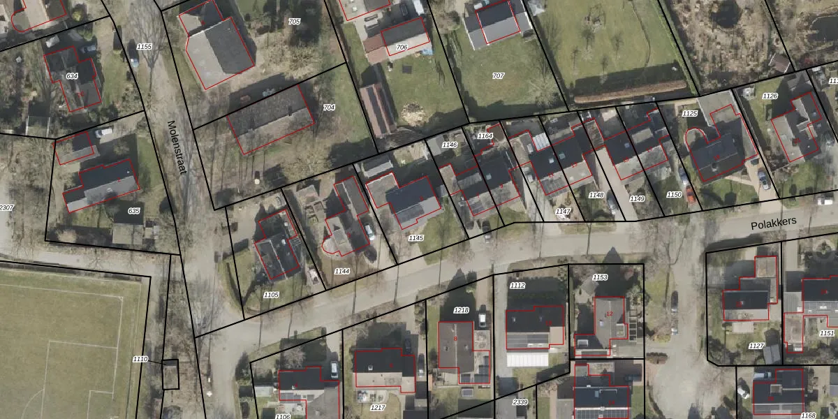 Het perceel waarop Polakkers 5 staat heeft een oppervlakte van 476 m². Dit is een groot perceel. De perceeloppervlakte wordt geregistreerd door het Kadaster. Gedetailleerde informatie over de maten van dit perceel kunt u vinden in het rapport Kadastrale kaart met maatvoering van Polakkers 5.