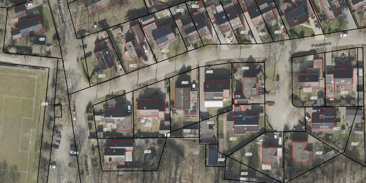 Het perceel waarop Polakkers 8 staat heeft een oppervlakte van 479 m². Dit is een groot perceel. De perceeloppervlakte wordt geregistreerd door het Kadaster. Gedetailleerde informatie over de maten van dit perceel kunt u vinden in het rapport Kadastrale kaart met maatvoering van Polakkers 8.