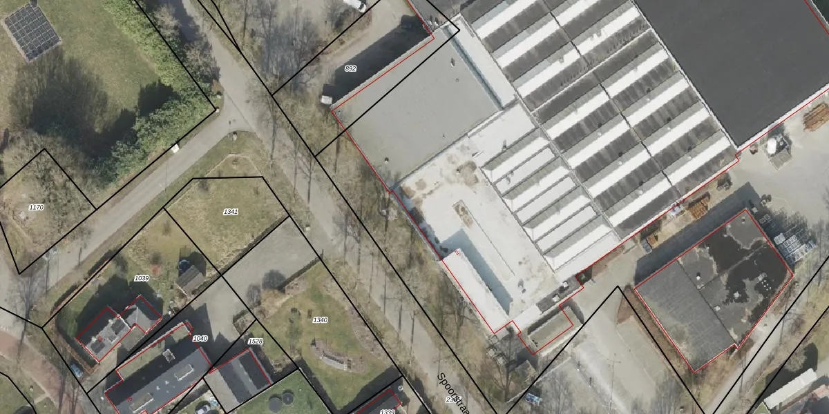 Het perceel waarop Spoorstraat 2 staat heeft een oppervlakte van 2,0 ha. Dit is een zeer groot perceel. De perceeloppervlakte wordt geregistreerd door het Kadaster. Gedetailleerde informatie over de maten van dit perceel kunt u vinden in het rapport Kadastrale kaart met maatvoering van Spoorstraat 2.