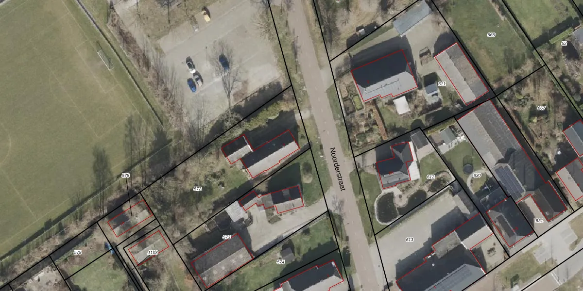 Het perceel waarop Noorderstraat 7 staat heeft een oppervlakte van 1260 m². Dit is een zeer groot perceel. De perceeloppervlakte wordt geregistreerd door het Kadaster. Gedetailleerde informatie over de maten van dit perceel kunt u vinden in het rapport Kadastrale kaart met maatvoering van Noorderstraat 7.