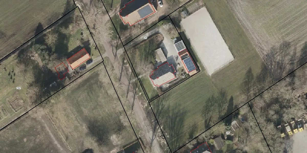 Het adres ligt op het perceel BGR01-R-25, dat zich in de kadastrale gemeente Borger bevindt. Het perceel is kleiner dan gemiddeld in Borger. Het perceel is 1536 m² groot, terwijl het gemiddelde ligt op 1,1 ha. De grootste perceeloppervlakte in de kadastrale gemeente is 5,76 km². De kleinste oppervlakte bedraagt 0 m². Er zijn geen andere adressen aanwezig op het perceel. De huidige grenzen van het perceel zijn digitaal in de Basisregistratie Kadaster (BRK) geregistreerd op 31-05-2007.