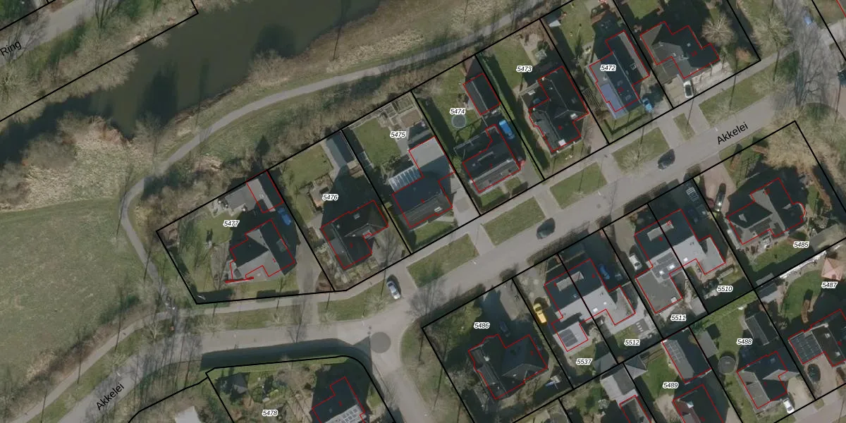 Akkelei 5 is gelegen op kadastraal perceel BTP00A5475. Deze kadastrale aanduiding is uniek en wordt gebruikt door het Kadaster om eigendomsrechten en andere zakelijke rechten vast te leggen. Het perceel maakt onderdeel uit van de kadastrale gemeente Buitenpost.