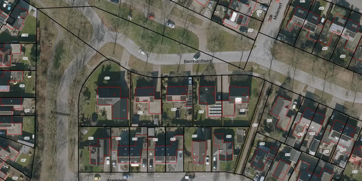 Het perceel waarop Bernhardlaan 46 staat heeft een oppervlakte van 473 m². Dit is een groot perceel. De perceeloppervlakte wordt geregistreerd door het Kadaster. Gedetailleerde informatie over de maten van dit perceel kunt u vinden in het rapport Kadastrale kaart met maatvoering van Bernhardlaan 46.